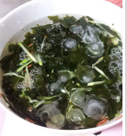 △ 재료 : 미역, 오이, 청·홍고추, 소금, 매실식초, 매실효소