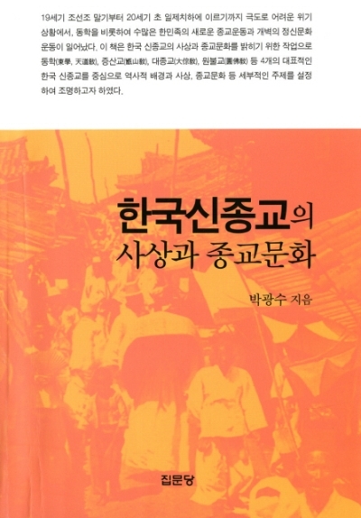 원광대 종교문제연구소장인 박광수 교수(원불교 학과)가 낸 '한국신종교의 사상과 종교문화'(집문당). 한국신종교에 대한 지속적인 관심을 갖고 신화·상징·의례에 대한 연구를 해온 박 교수가 낸 이 책은 한국학술진흥재단의 지원을 받아 수행한 연구의 결실이기도 하다.