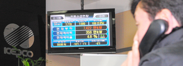 11일 오전 한파에 전력 사용량이 급증해 전력경보가 잇따라 발령되면서 한전 전북본부 전북배전센터 직원들이 전력수급현황을 체크하고 있다.