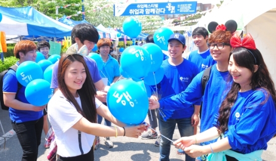 16일 동행이라는 제하로 우석대학교에서 열린 너울동학 대동제에서 학생들에게 풍선을 나눠주며 축제 홍보 활동을 하고 있다.