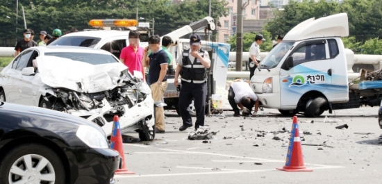 10일 오전 9시 40분께 마전교 교차로에서 안모씨(34)의 1톤 냉동탑차가 신호위반으로 교차로를 통과하다 정상신호에 따라 주행하던 김모씨(53)의 BMW 승용차량을 들이받았다. 다행히 큰 인명피해는 없었지만, 1톤 냉동탑차의 냉동고가 도로에 떨어지면서 이 구간에서는 한 때 지·정체현상이 빚어졌다.