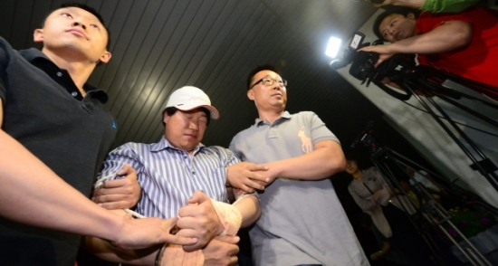 ▲ 전주지검 남원지청에서 조사를 받다 탈주한 이대우가 14일 부산 해운대에서 검거된 후 전주지검 청사로 압송되고 있다. 추성수기자chss78@