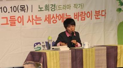 이날 강사로 초빙된 노희경 드라마 작가는 '그들이 사는 세상에는 바람이 분다'를 주제로 청중과의 일문일답을 통해 자신의 삶과 신념을 담담히 풀어냈다.