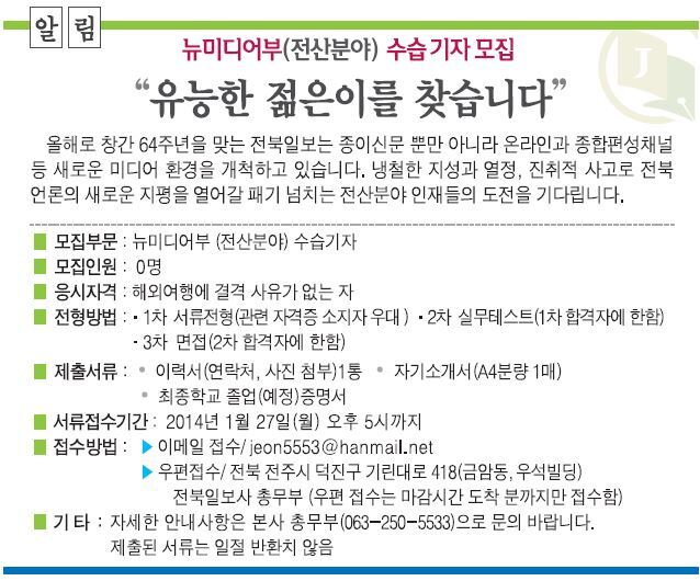 본보 뉴미디어부(전산분야) 수습기자 모집