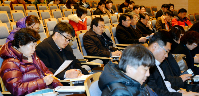 7일 전주 전통문화전당에서 열린 제6회 전국동시자방선거 전주시 예비후보자 안내 설명회에 참석자들이 진지하게 설명을 듣고 있다.