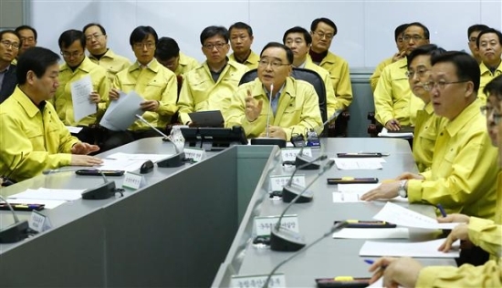 정홍원 국무총리가 9일 오후 서울 세종로 정부서울청사 중앙재난안전대책본부에서 폭설 관련 관계 대책회의를 주재하고 있다. 연합뉴스·