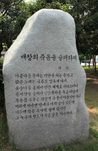 이매창도 가고 허균도 세월 속에 사라져 간 부안에 매창의 묘(매창이 뜸 이라고 불렀음)와 허균의 시만 남아 길가는 나그네들을 맞고 있을 뿐이다.