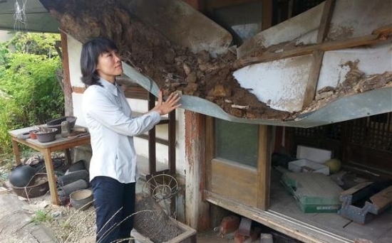 ▲ 최고원 김제동학농민혁명기념사업회 사무국장이 붕괴 위기에 놓인 원평집강소를 보고 있다.