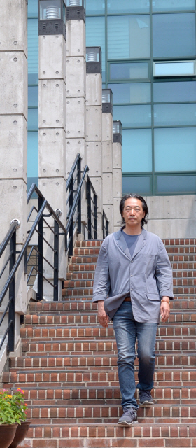 ▲ 한국예술종합대학에서 만난 디자이너 은병수 대표가 인터뷰를 마치고 가벼운 발걸음으로 계단을 내려오고 있다. 안봉주기자 bjahn@