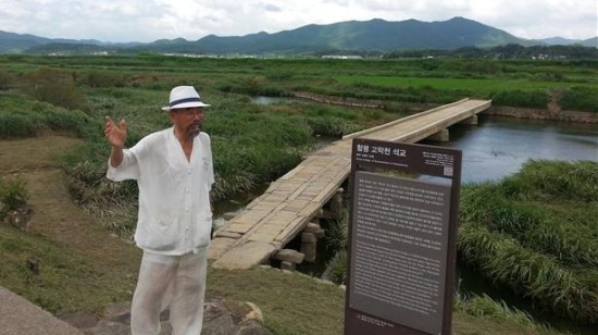 ▲ 동학농민혁명 당시 무안·함평의 농민군과 나주 수성군 사이에서 치열한 전투가 벌어져 수많은 농민군이 전사한 고막교(古幕橋)에서 배종열 무안동학농민혁명기념사업회 고문이 당시 상황에 대해 설명하고 있다.