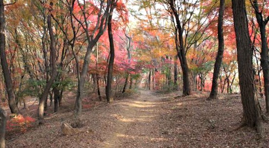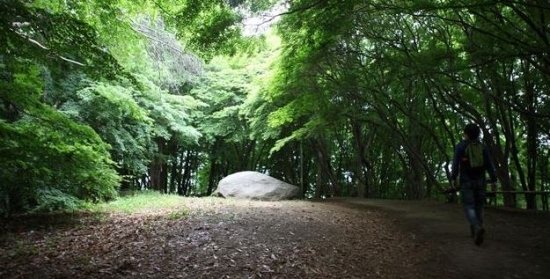 로버트 프루스트의 〈가지 않는 길〉을 떠올리며 좌측으로 난 길을 따라가면 하늘이 안 보이도록 빼곡하게 우거진 단풍나무숲에 이른다. 숲에서 한가로움을 마음껏 누리는 사람들이 삼삼오오 모여 있고, 그 길을 따라가다가 보면 장군바위라는 바위 하나가 덜렁 놓여 져 있다. 가끔 햇살이 눈비시게 내려 쪼일 때면 천지창조처럼 한줄기 햇살기둥이 은밀하게 비치는 것을 볼 수가 있다.