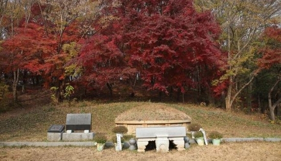 ▲ 덕진연못을 지나 연화마을 입구에 있는 작은 샛길 사이로 단풍터널로 접어들면 대하 소설‘혼불’의 작가 최명희 묘소에 이른다.