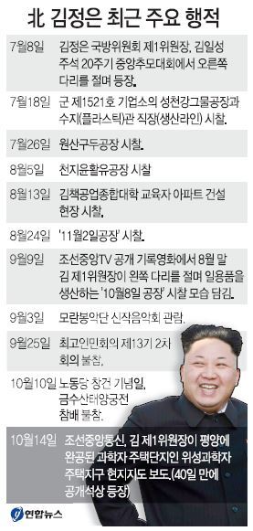 중앙통신은 김 제1위원장이 “위성과학자주택지구의 여러 곳을 돌아보시면서 건설 정형(실태)을 구체적으로 요해(파악)하셨다”고 밝혀 그가 거동에 큰 불편이 없음을 시사했다.