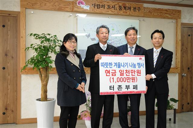 전주 송천동 터존뷔페(대표 김옥원)는 지난 24일 어려운 이웃을 위해 써달라며 전주 덕진구청에 성금 1000만원을 기탁했다.