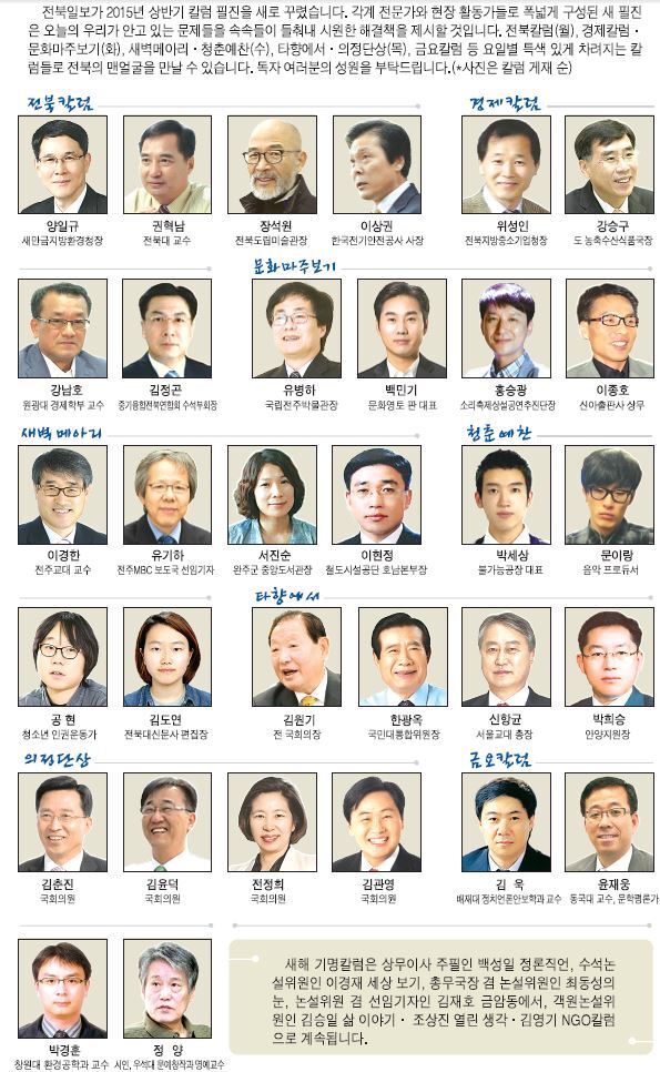 희망을 여는 새아침, 새 필진이 여러분을 찾아갑니다