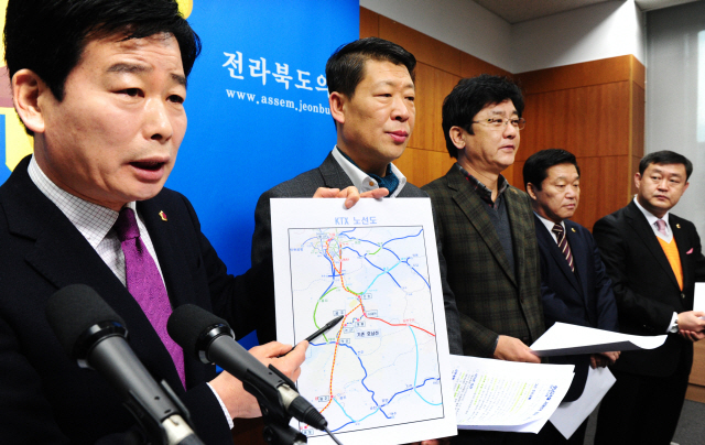 전북도의회 의장단은 20일 기자회견을 열고 “KTX가 애초 계획대로 운행하면 운행시간이 현재의 115분에서 66분으로 대폭 줄어드는 반면 서대전을 경유하면 111분으로 불과 4분 단축된다”고 들고 “운행시간을 고작 4분 앞당기려고 10년 동안 9조원이라는 혈세를 쏟아부은 꼴”이라며 서대전 경유 구상을 절대로 수용할 수 없다고 주장했다.