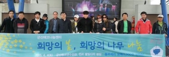 군산에코나눔센터(이사장 유경재)가 지난 4일 시민들과 관광객들에게 블루베리 묘목을 무료로 나눠주며 나무심기의 중요성을 홍보했다.