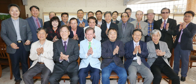12일 전주전통문화관에서 열린 (사)전주도시학연구회 창립총회에 장명수 이사장을 비롯한 참석자들이 출범식을 갖고 기념촬영을 하고 있다.