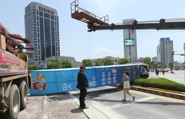 강풍에 쓰러진 광고탑