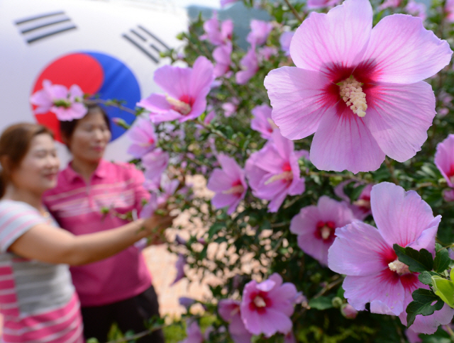 70주년 광복절을 이틀 앞둔 13일 완주 고산자연휴양림 테마식물원에 무궁화가 활짝 피어있다. 완주 고산자연휴양림에서는 14일부터 16일까지 3일간 산림청이 주최하고 완주군이 주관하는 ‘제25회 나라꽃 무궁화 전국축제’가 열린다. 이번 축제에서는 180종 2만그루의 무궁화를 감상할 수 있다.