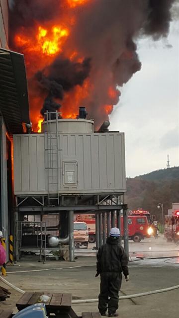 이날 화재는 냉각타워를 설치하는 과정에서 용접작업중 불꽃이 튀면서 발생한 것으로 알려졌다.