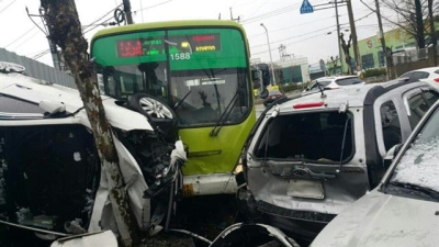 16일 오후 1시40분께 완주군 봉동읍 완주산업단지 사거리에서 외환은행~현대자동자 정문방향으로 달리던 시내버스와 쏘렌토 차량이 충돌했다.