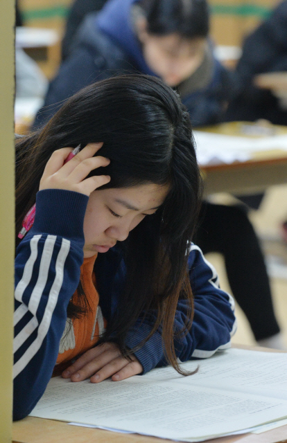 2016학년도 전주·군산·익산 평준화지역 일반계 고교 입학 선발고사가 실시된 18일 전주 제10시험장인 전주솔내고에서 수험생들이 시험을 치르고 있다.