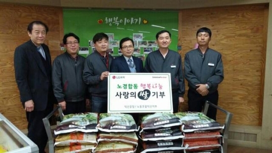 LG화학 익산공장(공장장 이영석)은 12일 익산행복나눔마켓·뱅크를 방문해 사랑의 쌀 400kg(시가 100만원 상당)을 기탁했다.