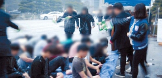 대학가에 따르면 지난달 24일 한 대학교 페이스북 페이지 ‘드루와’에는 “이 대학 학생회관 5층에서 군기 잡는데 무슨 일인지 해명 좀 부탁한다고 올려주세요”라는 글과 함께 사진 한 장이 올라왔다.