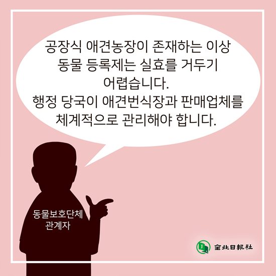 동물보호단체는 “공장식 애견농장이 존재하는 이상 동물 등록제는 실효를 거두기 어렵다. 행정 당국이 애견번식장과 판매업체를 체계적으로 관리해야 한다”고 주장하고 있습니다.