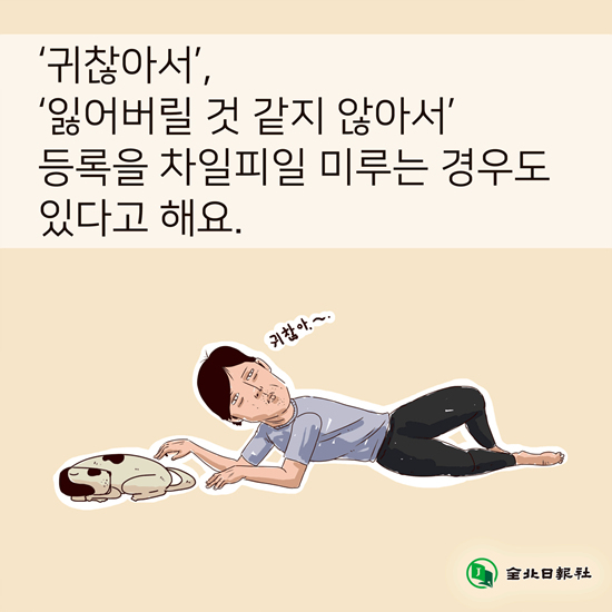 #17.‘귀찮아서’, ‘잃어버릴 것 같지 않아서’ 등록을 차일피일 미루는 경우도 있다고 해요.