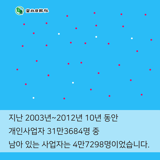 지난 2003년~2012년 10년 동안 개인사업자 31만3684명 중 남아 있는 사업자는 4만7298명이었습니다.