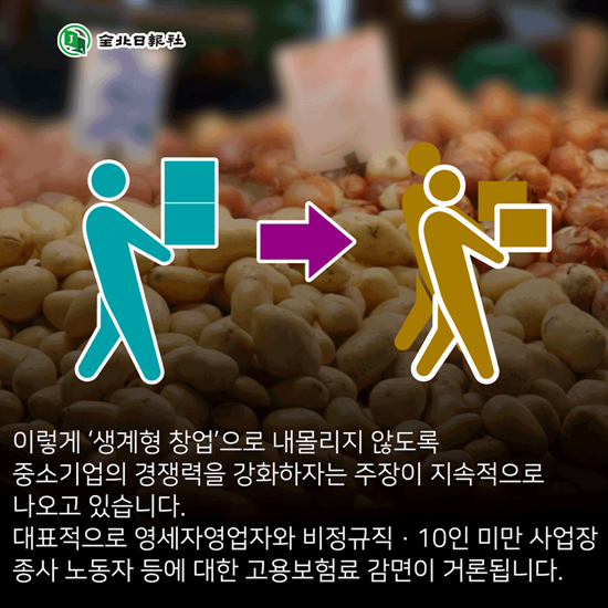 이렇게 ‘생계형 창업’으로 내몰리지 않도록 중소기업의 경쟁력을 강화하자는 주장이 지속적으로 나오고 있습니다.