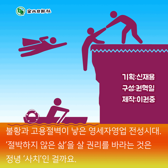 불황과 고용절벽이 낳은 영세자영업 전성시대. ‘절박하지 않은 삶’을 살 권리를 바라는 것은 정녕 ‘사치’인 걸까요.