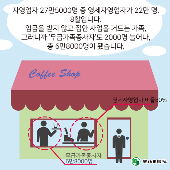 자영업자 27만5000명 중 영세자영업자가 22만 명. 8할입니다.
