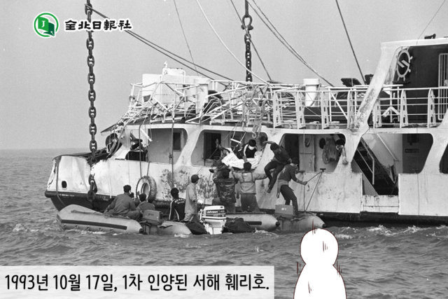 1993년 10월 17일, 1차 인양된 서해 훼리호.