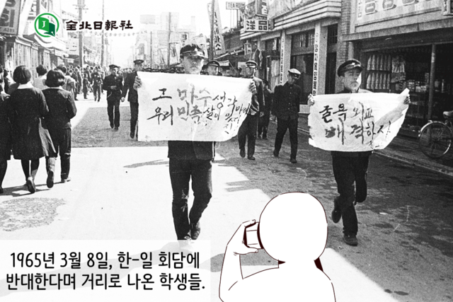 1965년 3월 8일, 한-일 회담에 반대한다며 거리로 나온 학생들.