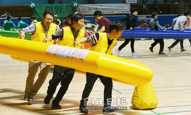 22일 장애인 거주시설 이용인 한마당축제가 전주화산체육관에서 열린 가운데 참석자들이 운동회를 하며 즐거운 시간을 보내고 있다.