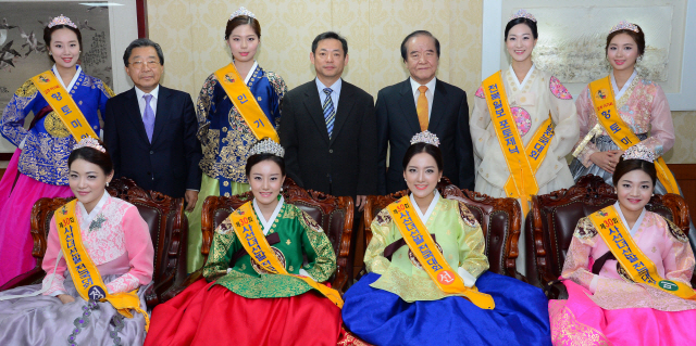 ‘제30회 사선녀 선발 전국대회’에서 영예의 진으로 뽑힌 유혜리양과 선 정무린, 미 이유나, 정 조정연, 전북일보 포토제닉상 조다선명, 인기상 구가은, 향토미인상 김지수·김현진씨 등은 양영두 소충사선문화제전위원회 위원장과 함께 본보를 방문했다.