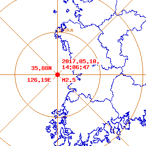 이번 지진은 올들어 도내에서 발생한 세 번째 지진이다. 지난달 7일 자정께 무주군 동남동쪽 13㎞ 지역에서 규모 2.0의 지진이 발생했고, 이보다 앞선 3월 6일에는 부안군 위도 북서쪽 24㎞ 해역에서 규모 2.0의 지진이 발생했다.