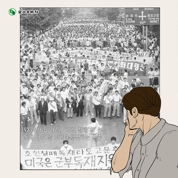 (차창 밖으로 지나는 풍경-1987년 6월 26일, ‘호헌 철폐’와 ‘독재 타도’를 외치며 행진하는 군중)