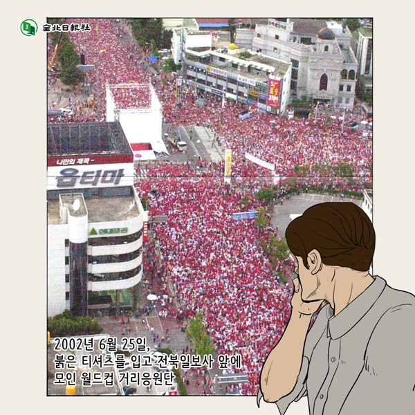 (차창 밖으로 지나는 풍경-2002년 6월 25일, 붉은 티셔츠를 입고 전북일보사 앞에 모인 월드컵 거리응원단)
