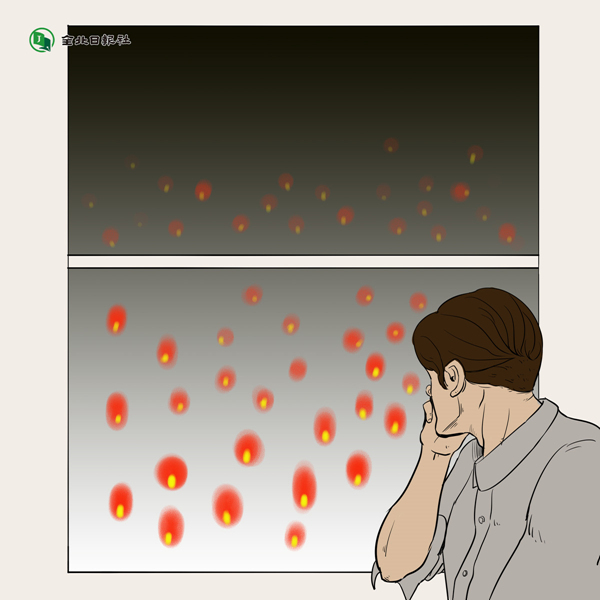 (다시 차창 밖을 보면 어느새 어두워져 있고, 촛불이 보인다.)