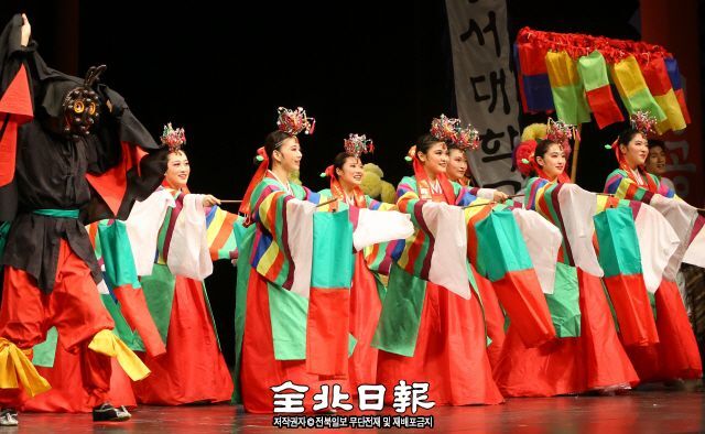 제22회 전국대학생마당놀이축제가 열린 23일 국립무형유산원 대공연장에서 한 대학 참가팀이 부산시 수영동에서 전승돼 온 가면극인 수영야류를 선보이고 있다.