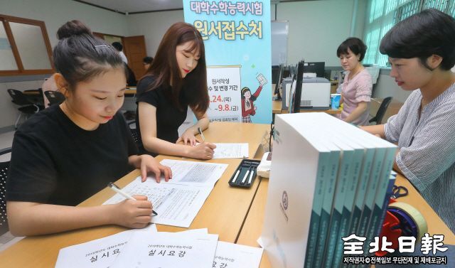 24일 2018학년도 대학수학능력시험 원서접수가 시작된 가운데 전주교육지원청에서 수험생들이 수능 원서를 작성하고 있다. 원서는 내달 8일까지 교육청과 해당 고등학교에서 접수한다.