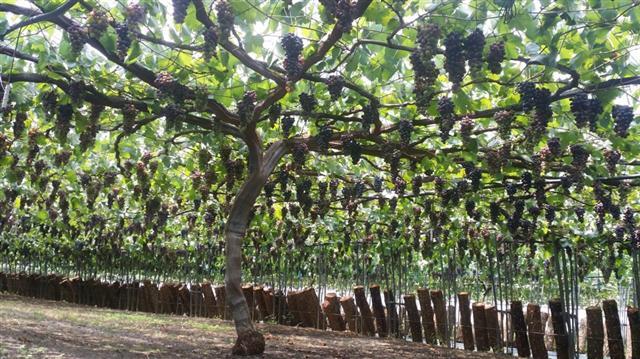 지난 2005년에 식재한 13년생 포도나무에 무려 4000송이 포도가 매달려 수확을 앞두고 있다.