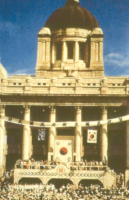 ▲ 1945년 8월 15일 대한민국정부수립 축하식.