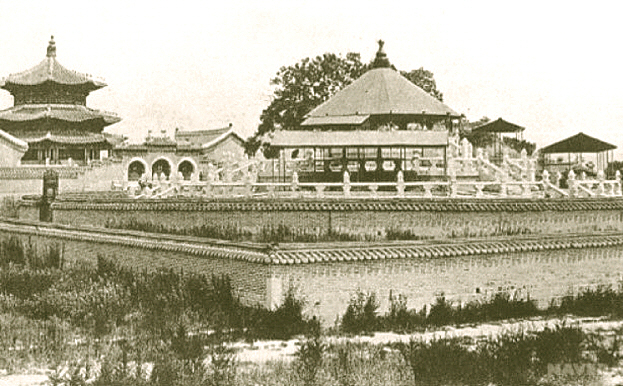 ▲ 1897년 10월 대한제국을 선포하고 하늘에 제사지낸 환구단(현 서울시청앞 조선호텔자리)과 신위를 모신 황궁우.