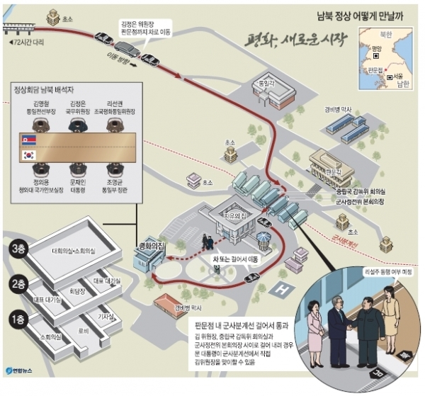김정은 위원장이 MDL을 넘어오면 자유의집을 거치거나 아니면 자유의집 오른쪽 도로를 이용해 평화의집으로 이동하게 된다. 200~250m 정도의 거리로, 차량을 이용할 수도 있고 걸어서 갈 수도 있다.