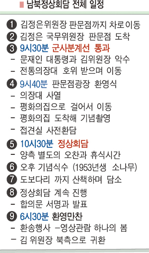 양 정상은 공동식수를 마친 뒤 군사 분계선 표식물이 있는 ‘도보다리’까지 친교 산책을 하면서 담소를 나눌 예정이다.